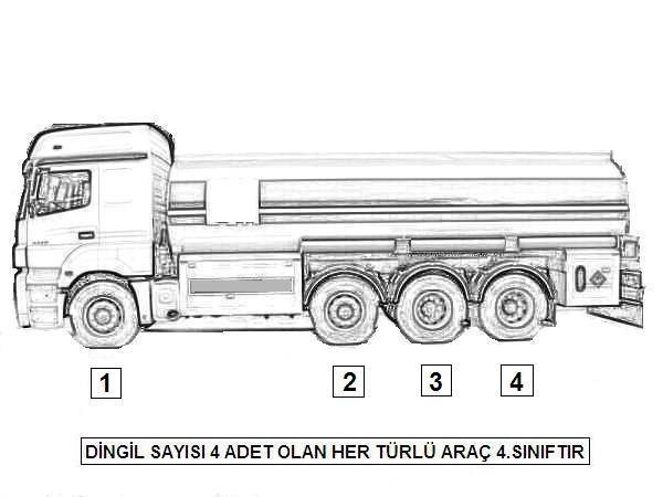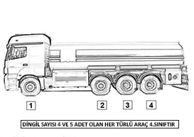 The vehicle in illustration must request a Class 4 OGS label from banks. If one of the axles is lifted during the pass, although the vehicle is Class 4, it will be charged Class 3. If two axles are lifted, it will be charged as Class 2.