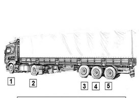 The vehicle in illustration must request a Class 4 OGS label from banks. If two axles are lifted during the pass, although the vehicle is Class 4, it will be charged as Class 3. If the lorry passes as trailer only, it will be charged as Class 2.